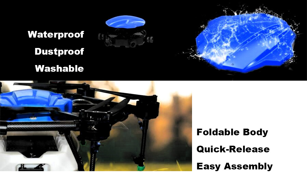 After spraying pesticides or fertilizers, the entire drone can be directly rinsed with clean water.