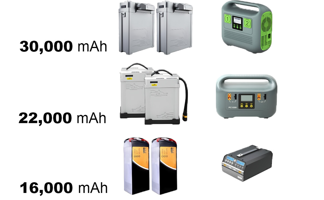 The AirNovix 50L uses high-capacity lithium batteries, typically providing 10–15 minutes of flight per full load.